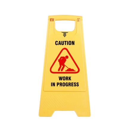 A caution board alerts people to nearby hazards, promoting safety and awareness in workplaces, public areas, and construction environments.