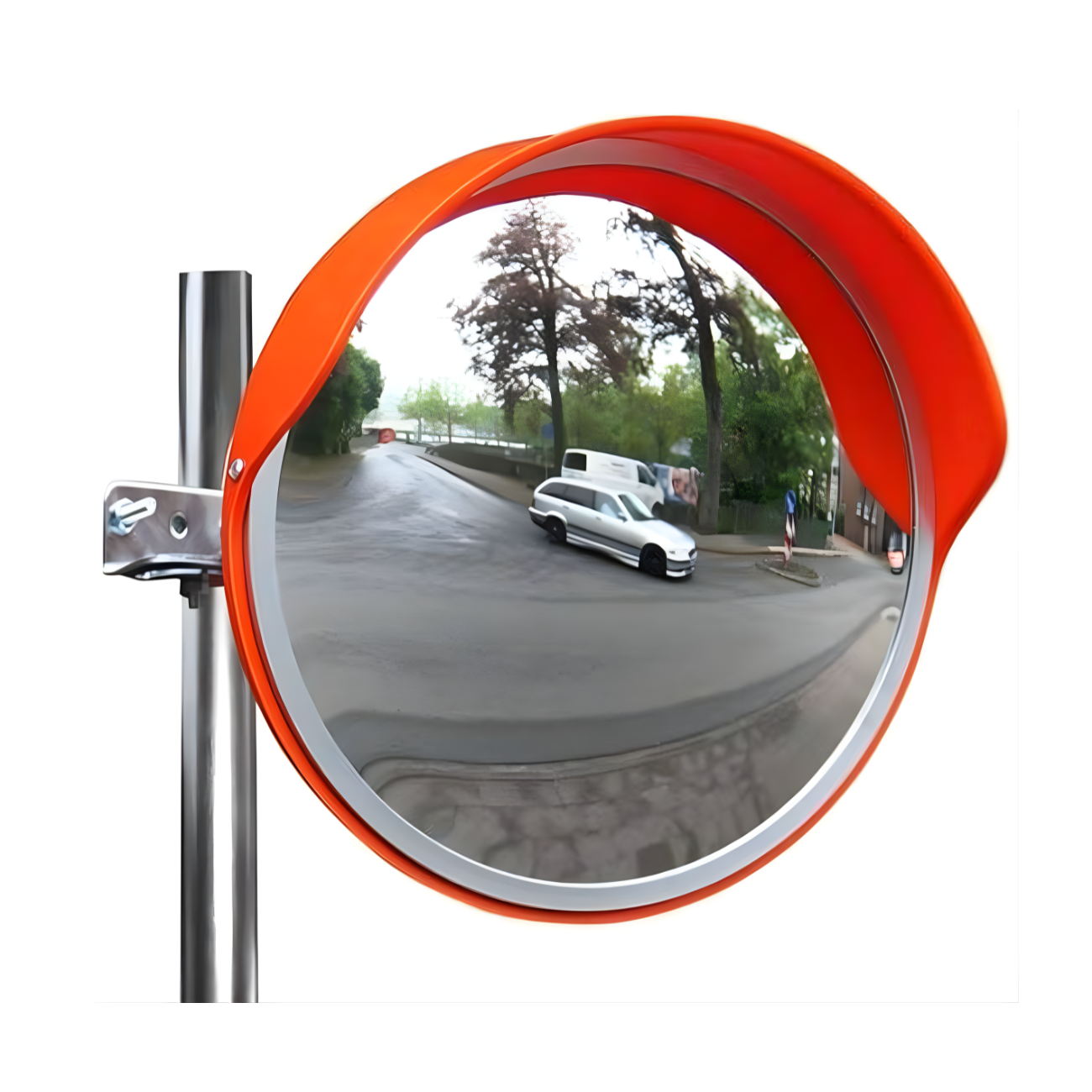A convex mirror is an essential road safety device designed to provide a wide-angle view of blind spots and hidden areas. Commonly installed at intersections, sharp curves, parking lots, and building exits, it enhances visibility for drivers and pedestrians, reducing collision risks and improving overall traffic safety and situational awareness.