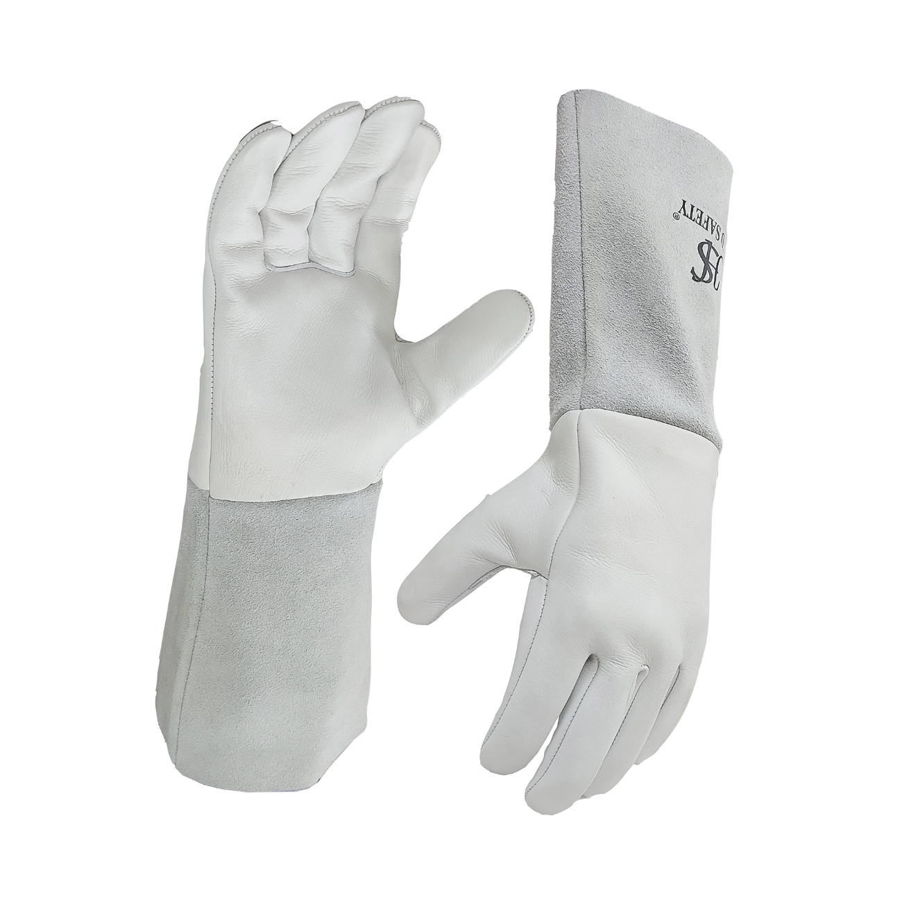 Heat-resistant leather welding gloves with long cuffs offering protection, durability, and comfort for welding and heavy industrial work.